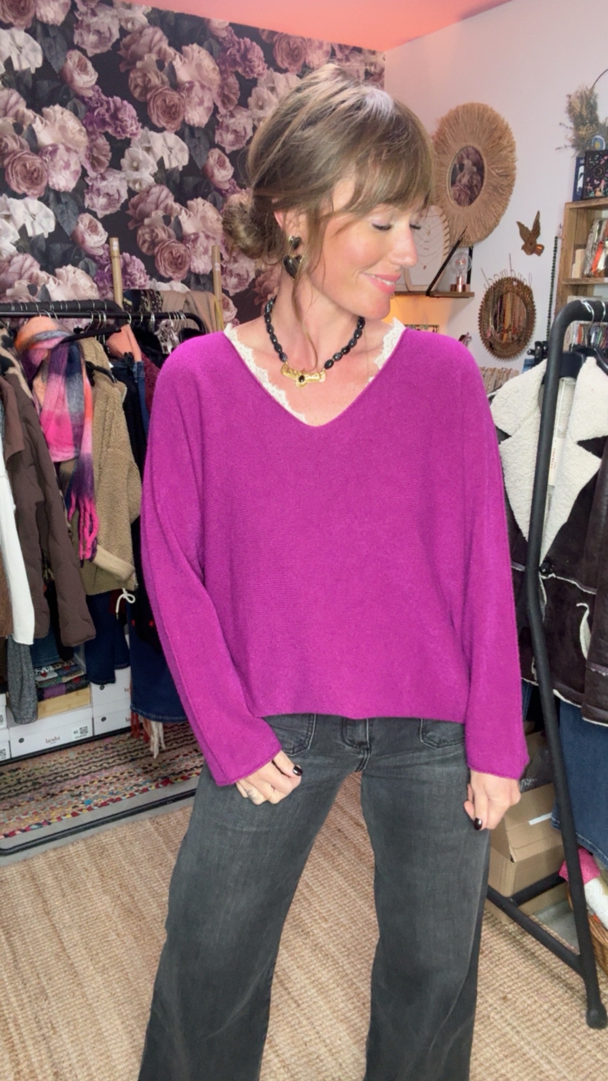 Pull Severine Home>Prêt-à-porter>Pulls>Pull Severine Pull Severine 29,99 € Pull large couleur Choose a couleurCamelKakimagentaClear Pull Severine quantity Ajouter au panier UGS : PULLSEVerine Catégories : Prêt-à-porter, Pulls Share000 Description Informations complémentaires Pull ample col V Maille extensible et douce Taille unique, grand Informations complémentaires couleur Camel, Kaki, magenta Reviews(0) There are no reviews yet. Add a Review Be the first to review “Pull Severine” Annuler la réponseYour review *Your rating Rate… Perfect Good Average Not that bad Very Poor Nom * E-mail * Enregistrer mon nom, mon e-mail et mon site dans le navigateur pour mon prochain commentaire. Related products 45,00 € Ajouter au Panier Pull Lova lova Prêt-à-porter, Pulls Pull cœur sequins 45,00 € 45,00 € Ajouter au Panier 39,00 € Ajouter au Panier Sweat MON CHÉRI Prêt-à-porter, Sweat Sweat mon chéri 39,00 € 39,00 € Ajouter au Panier 21,00 € Ajouter au Panier T-shirt dentelle Prêt-à-porter, T-shirts T-shirt original dentelle 21,00 € 21,00 € Ajouter au Panier Sale 39,00 € Le prix initial était : 39,00 €.21,00 €Le prix actuel est : 21,00 €. Select options Blouse Alexia Chemises, Prêt-à-porter Blouse fluide 39,00 € Le prix initial était : 39,00 €.21,00 €Le prix actuel est : 21,00 €. 39,00 € Le prix initial était : 39,00 €.21,00 €Le prix actuel est : 21,00 €. Select options