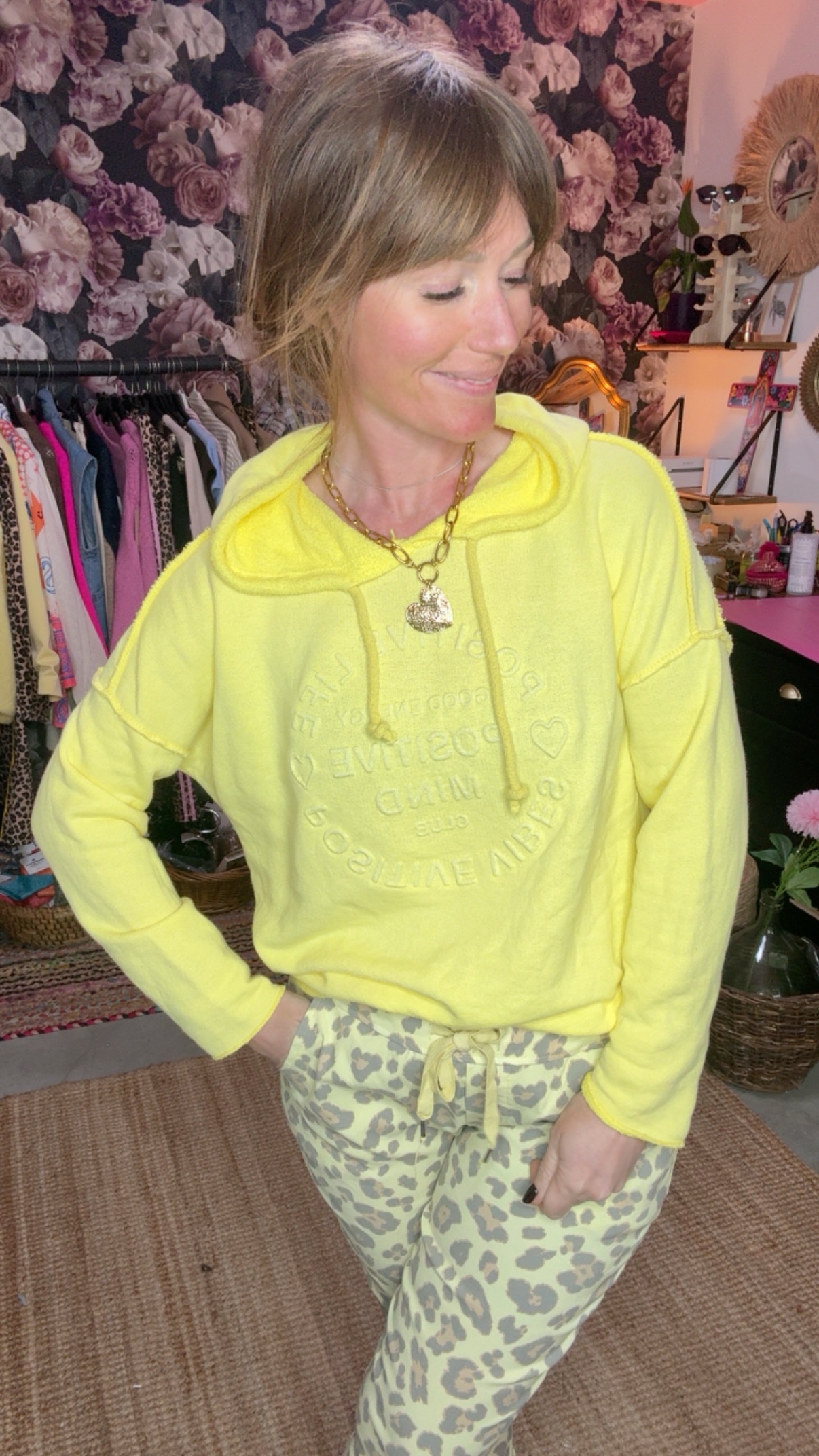 Sweat POSITIVE VIBES Home>Prêt-à-porter>Sweat>Sweat POSITIVE VIBES Sweat POSITIVE VIBES 31,00 € Sweat à capuche couleur Choose a couleurbarba papaBleuCamelJAUNEClear Sweat POSITIVE VIBES quantity Ajouter au panier UGS : SWEATCAP Catégories : Prêt-à-porter, Sweat Share000 Description Informations complémentaires Sweat coton éponge à capuche Stylé et confort Taille unique Informations complémentaires couleur barba papa, Bleu, Camel, JAUNE Reviews(0) There are no reviews yet. Add a Review Be the first to review “Sweat POSITIVE VIBES” Annuler la réponseYour review *Your rating Rate… Perfect Good Average Not that bad Very Poor Nom * E-mail * Enregistrer mon nom, mon e-mail et mon site dans le navigateur pour mon prochain commentaire. Related products Sale 36,00 € Le prix initial était : 36,00 €.25,00 €Le prix actuel est : 25,00 €. Ajouter au Panier Jean OFF White 34 Pantalons, Prêt-à-porter Jean off White 36,00 € Le prix initial était : 36,00 €.25,00 €Le prix actuel est : 25,00 €. 36,00 € Le prix initial était : 36,00 €.25,00 €Le prix actuel est : 25,00 €. Ajouter au Panier Nouveau 29,00 € Select options Blazer Pascale Blazers, Prêt-à-porter Blazer uni 29,00 € 29,00 € Select options 29,00 € Ajouter au Panier Jupe léopard Jupes, Prêt-à-porter Jupe léopard 29,00 € 29,00 € Ajouter au Panier Nouveau 39,00 € Ajouter au Panier Blazer Tracy Blazers, Prêt-à-porter Blazer imprimé 39,00 € 39,00 € Ajouter au Panier